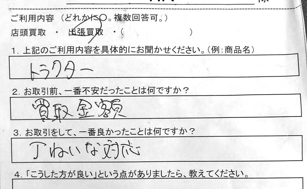 上記のご利用内容を具体的にお聞かせください。(例:商品名) トラクター
